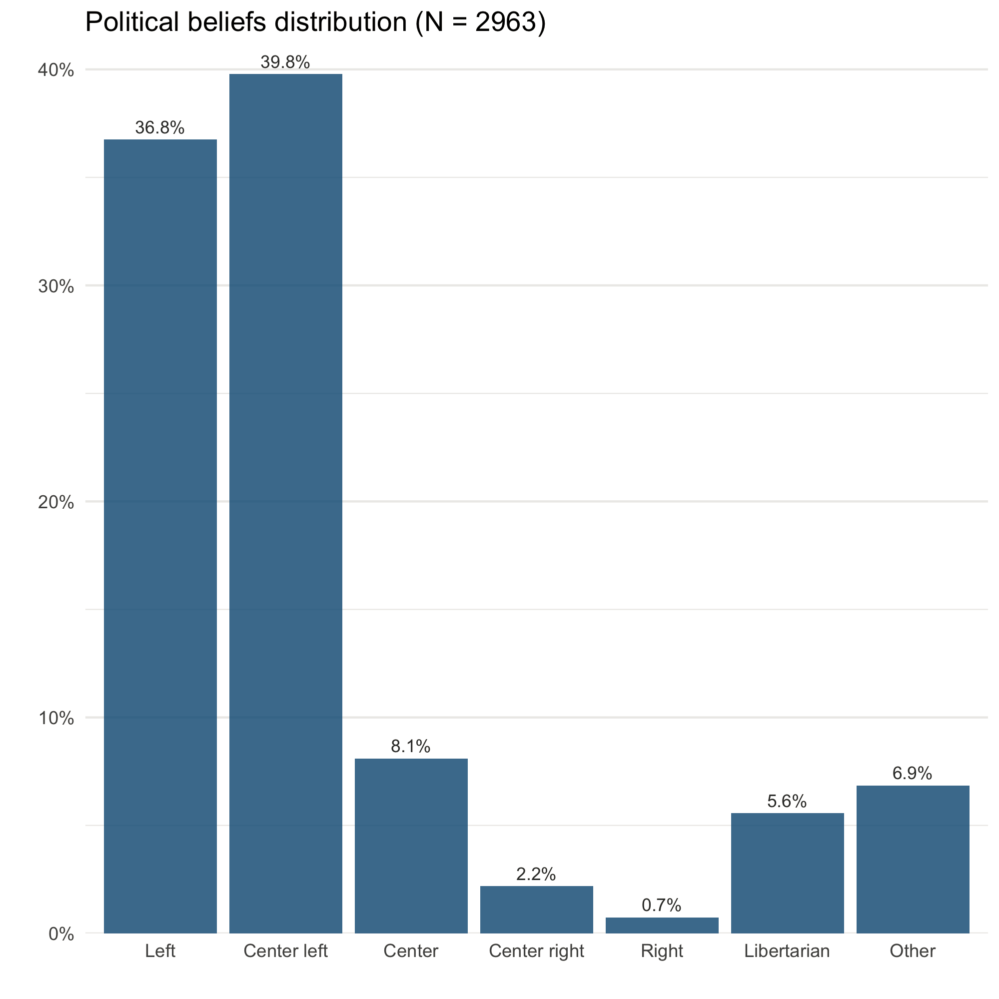 - If we'd force the people in the "Center left" to choose between "center" and "left" I doubt all of them would say "center" - so the "left" is probably bigger than the "center".
